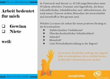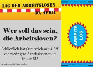 "Wer soll das sein, die Arbeitslosen? Schließlich hat Österreich mit 4,2% die niedrigste Arbeitslosenquote in der EU." So stand es auf der Vorderseite unserer "Arbeits-Lose" geschrieben.