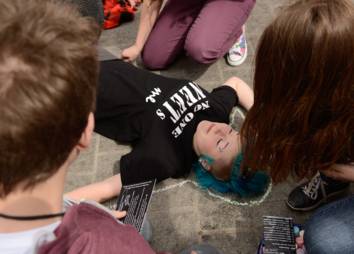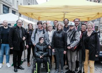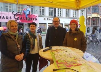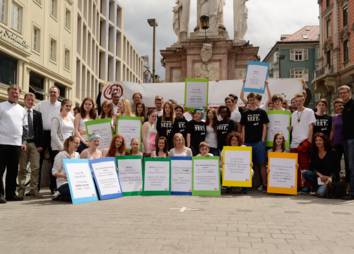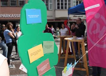 Bei der Protestaktion am 28. April 2023 wurde das Banner (siehe Downloads) präsentiert. Vertreter*innen aus Kirche, Politik und Wirtschaft haben an der Präsentation teilgenommen, um die Herausforderungen und Hoffnungen von betroffenen jungen Menschen ins öffentliche Bewusstsein zu rücken.