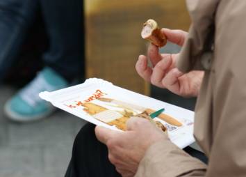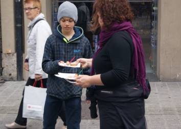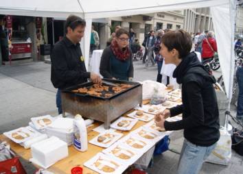 Weil uns das eben nicht wurst ist, machten wir uns für die Bedürfnisse dieser jungen Menschen stark und Passant*innen darauf aufmerksam. Am Würstelstand verteilten wir Verpflegung, die die Situation deutlich machte: ein halbes Würstl, ein halbes Brot, ein kleiner Klecks Senf. Immerhin etwas, aber nicht genug - so geht es auch Tiroler Jugendlichen am Arbeitsmarkt.