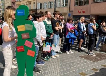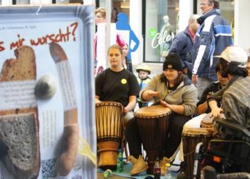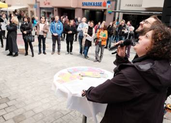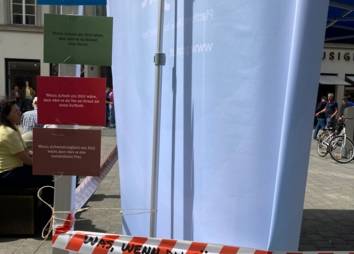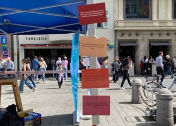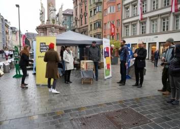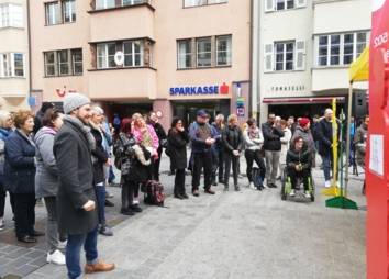 Die geglückten Lösungsversuche und Erfahrungen aus den Treffen wurden am Aktionstag, den 30. April 2022, um „5 vor 12“ in der Maria-Theresien-Straße präsentiert.