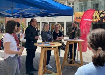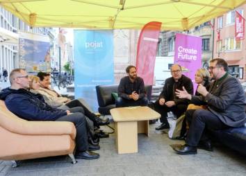 An der öffentlichen Präsentation der Sendung und der anschließenden Diskussion zum Thema Jugendarbeitslosigkeit nahmen am Tag der Arbeitslosen Vertreter*innen aus Kirche, Politik und Wirtschaft in der Maria-Theresien-Straße Platz. Auch Passant*innen hatten vor Ort Gelegenheit, in die Sendung hineinzuhören und ins Gespräch zu kommen. Nachhören kannst du die Sendung hier.