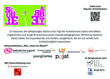 Gemeinsam mit dem Tiroler Autor und Poetry Slammer Stefan Abermann erstellten die 16 teilnehmenden Jugendlichen in einem Workshop Texte, die ihre ganz persönliche Perspektive auf das Thema Arbeitslosigkeit festhalten. In einer Videobotschaft, die sie zusammen mit David Minatti-Kraus erstellten, hielten sie ihre Überlegungen und Sichtweisen dann fest und schilderten, was es für sie bedeutet, arbeitslos zu sein.