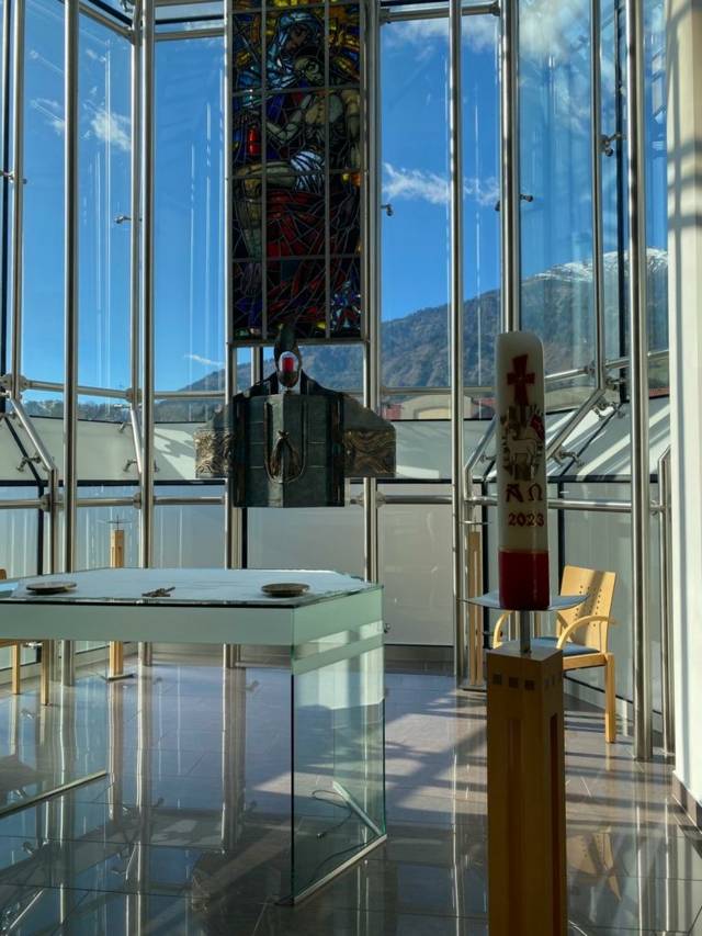 Die Glasfenster stammen aus der "alten" Kapelle und wurden bei der Errichtung des BKH Lienz 1931 geschaffen.