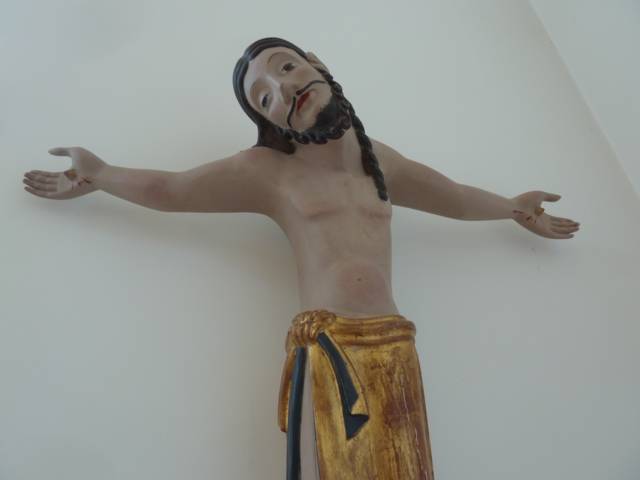 Der Kreuzweg wurde von "Savio" (geb. 1969) gestaltet, von ihm stammt auch die romanische Christusfigur vorne rechts.