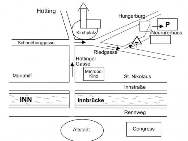Sie benützen die Bus-Linie K (Kranebitter Bahnhof) vom Bahnhof bis zur Haltestelle "Höttinger Kirchplatz" und gehen in Richtung Osten ca. 70 m in die Riedgasse, dort steht ein Wegweiser zum Neururerhaus.