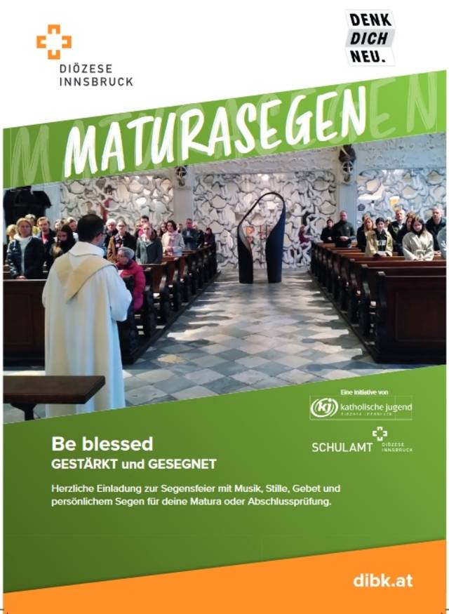 Wir bitten die Religionslehrer:innen ihre Schüler:innen zur Segensfeier einzuladen oder mit ihrer Klasse zu kommen. Für die Bewerbung senden wir Ihnen gerne Plakate zu! Hierfür bitte eine formlose E-Mail an: clemens.haider@dibk.at