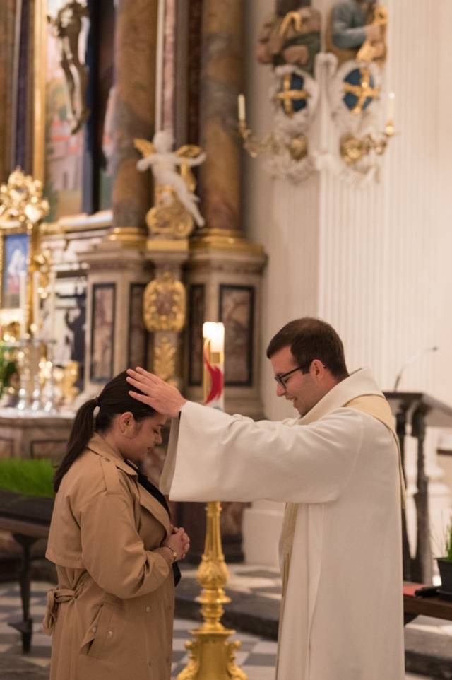 Für den Einzelsegen stellen sich alle in einer Schlange wie bei der Kommunion an und treten einzeln nach vorne. Je nach Zahl sind zwei oder drei Personen da, die den Einzelsegen spenden. Für den Segen werden beide Hände auf den Kopf gelegt. Mögliche Worte sind: