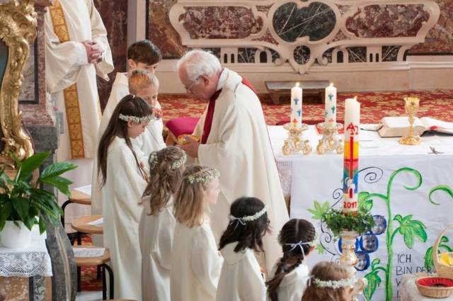 Am 7. April feierte die Gemeinde Hötting mit dem Weihejubiläum der Pfarrkirche zugleich das Fest der Erstkommunion.